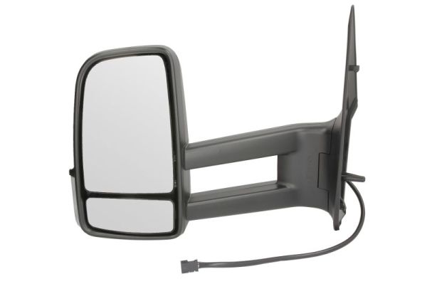 elektrické ovládanie; čierny kryt; vyhrievané; vypuklé sklo; chrómované sklo; 6-pinový konektor; s ukazovateľom smeru (smerovkou); dlhé rameno