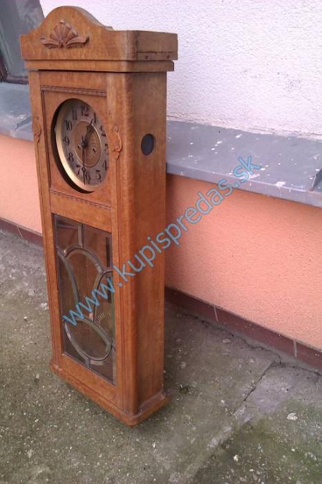 Predám dvojzavažové pekné starožitné nástenné hodiny v.1,00 m x š.0,35 m , (jedno závažie chýba a predné guľaté sklíčko ).Dobrý stav. Možná aj dohoda .
