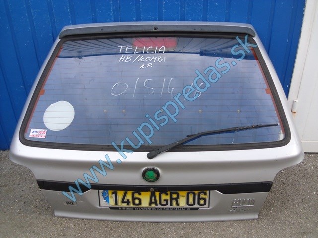 na škoda felícia od roku 1994 do roku 2001, piate dvere, zadná kapota, na dverách je sklo, zámok, motorček aj ramienko stierača, M1, použité originálne autosúčiastky z autovrakoviska, BEZ 1KS OSVETLENIA ŠPZ, BEZ BRZDOVÉHO SVETLA,