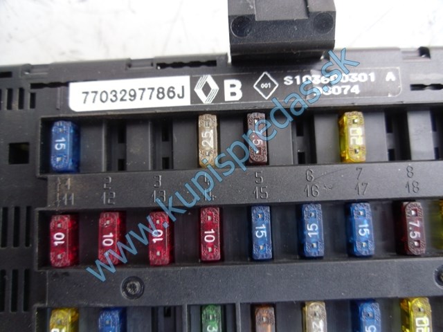 na renault megane scénic 1,6i 8V od roku 1996, poistková skrinka, 7703297786j, s103600301, použité originálne autosúčiastky z autovrakoviska